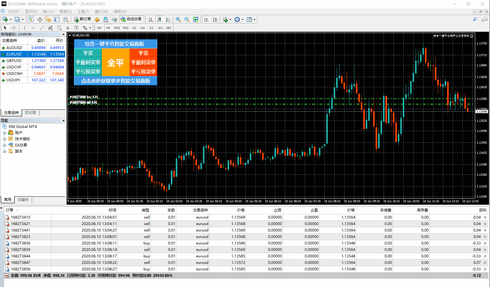 综合一键平仓程序化交易面板