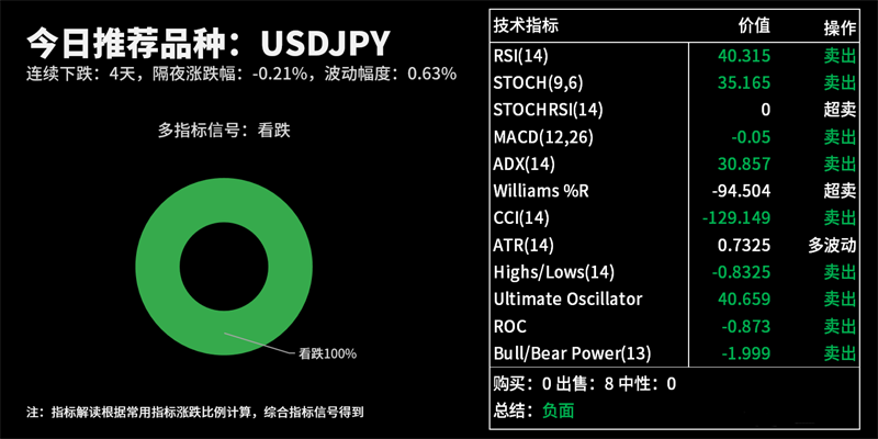 美元日元(下跌:4天,隔夜涨跌幅:-0.21%,波动幅度:0.63%)。