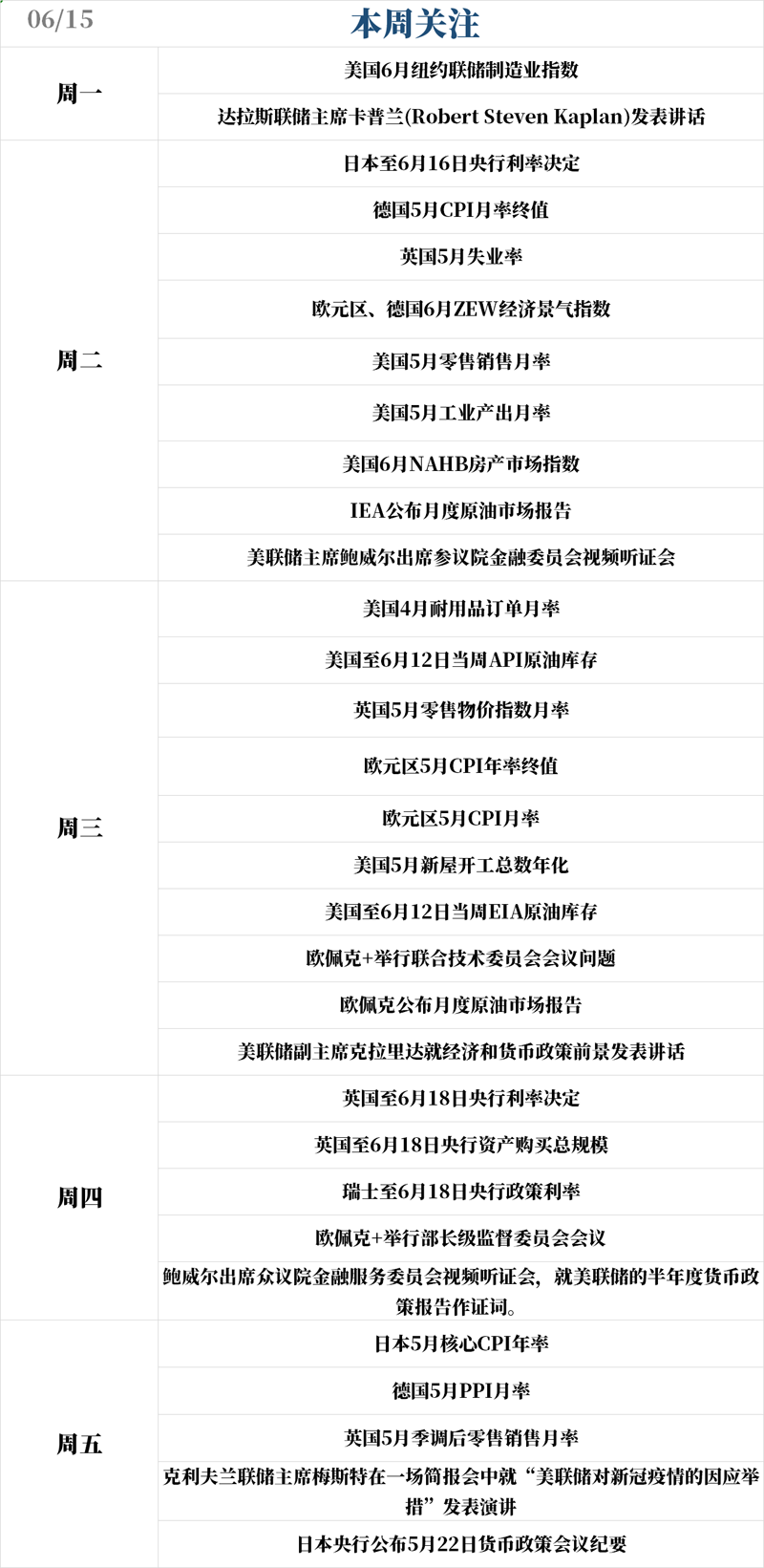 本周大事比较密集,三大央行将公布利率决议,美联储鲍威尔本周将三次登场。