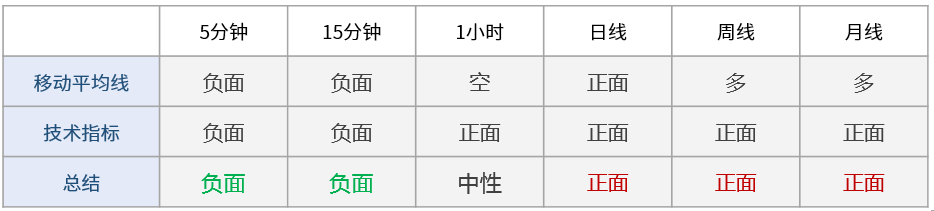 多周期技术信号显示日内市场情绪看跌:短线看跌(5分钟,15分钟,1小时),中线看涨(日线),长线看涨(周线,月线)。