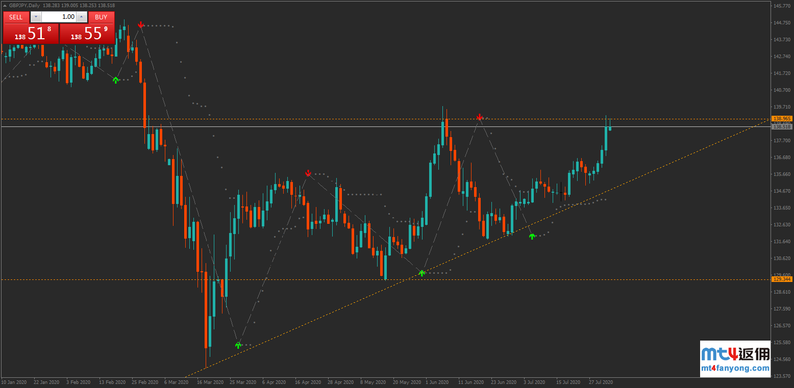 虽然目前而言英镑/日元交投于该水平之上,但即便成功突破了这一水平,更上方还将面临更大阻力水平的考验即140重要心理水平。140心理水平同时也含括了长期的斐波水平,此外汇集了所有这些可能的原因空头可能会介入,若涨势持续的话,届时多头将面临挑战。