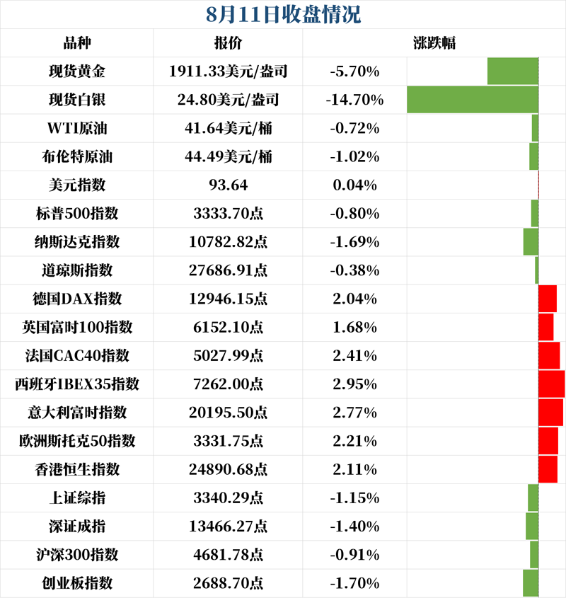 8月11日,沪深两市冲高回落,截至收盘,沪指跌1.15%,深证成指跌1.4%,创业板指跌1.7%。盘面上,种业、水产品、生态农业等板块逆市上涨;军工股表现活跃,中船科技等多股涨停。黄金、信息安全、仿制药、有色、券商等板块跌幅均超2.5%。