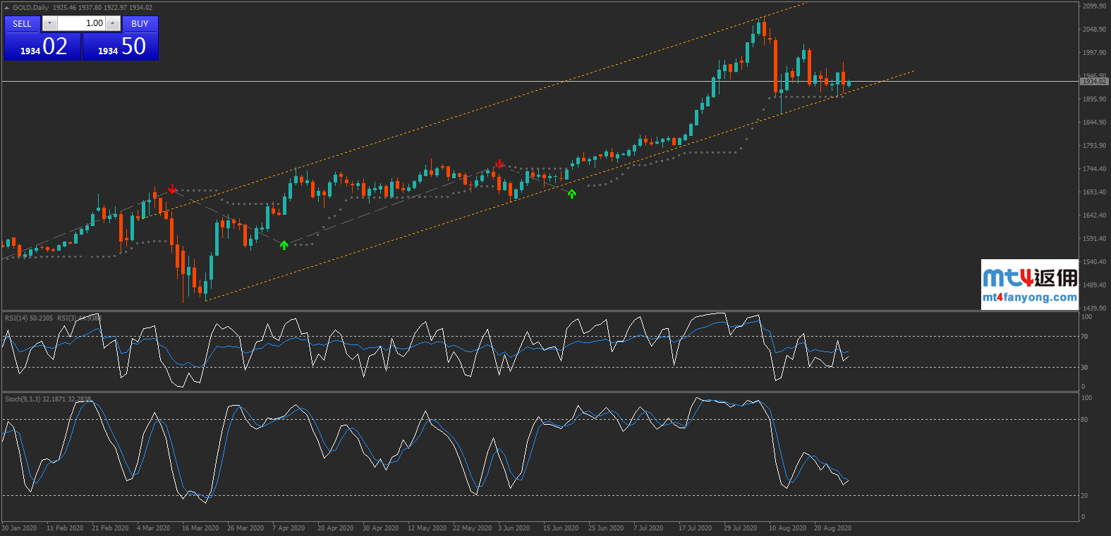观点:日线看跌,支撑见1900-1902.(突破三角形上轨则观点失效)