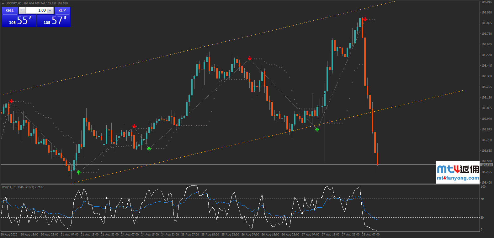 从这几天的走势可以看到,106.65-70档还是具有相当阻力的,过不去这里的话日元还有可能下探;而下方从105.30开始的底部仍在继续抬高,汇价上下都在发力,对106.00一线的争夺进入白热化。