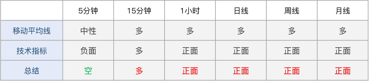 多周期技术信号显示日内市场情绪看涨