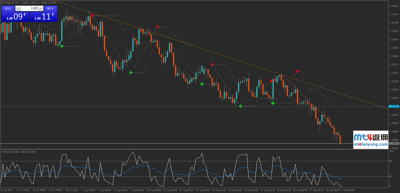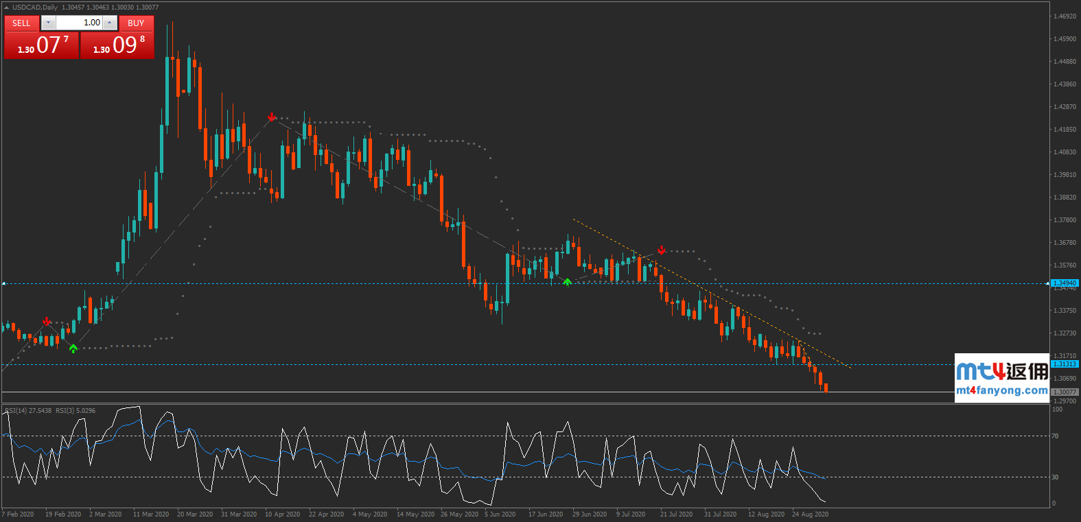 美元/加元4小时图:2020年6月-8月