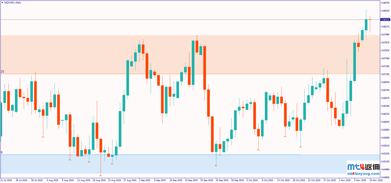 纽元/美元价格图:日线时间框架(2020年6月3日至11月10日)