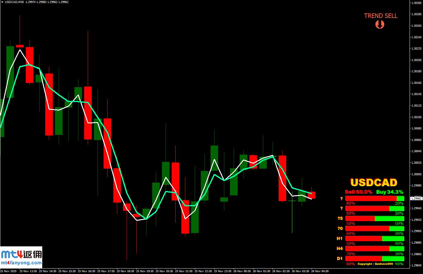 两根均线呈空头排列,不同周期多空能量对比指标-SELL百分比大于BUY百分比,有“TREND SELL”提示。