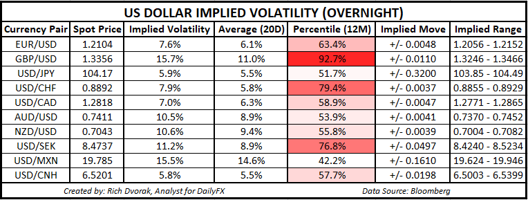 美元展望:美元隐含波动率交易区间(隔夜)
