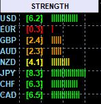 - 显示监控”货币对”及”货币”的趋势力度,货币趋势强度一目了然