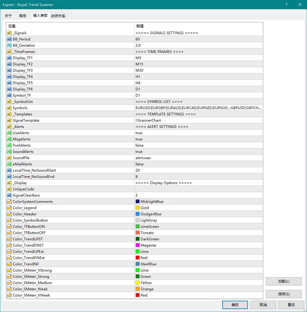 Symbols:这个参数刚才说过用来调节EA实时监控交易品种