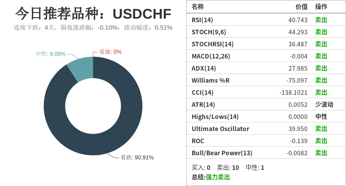 美元瑞郎(下跌:4天,隔夜涨跌幅:-0.10%,波动幅度:0.51%)。