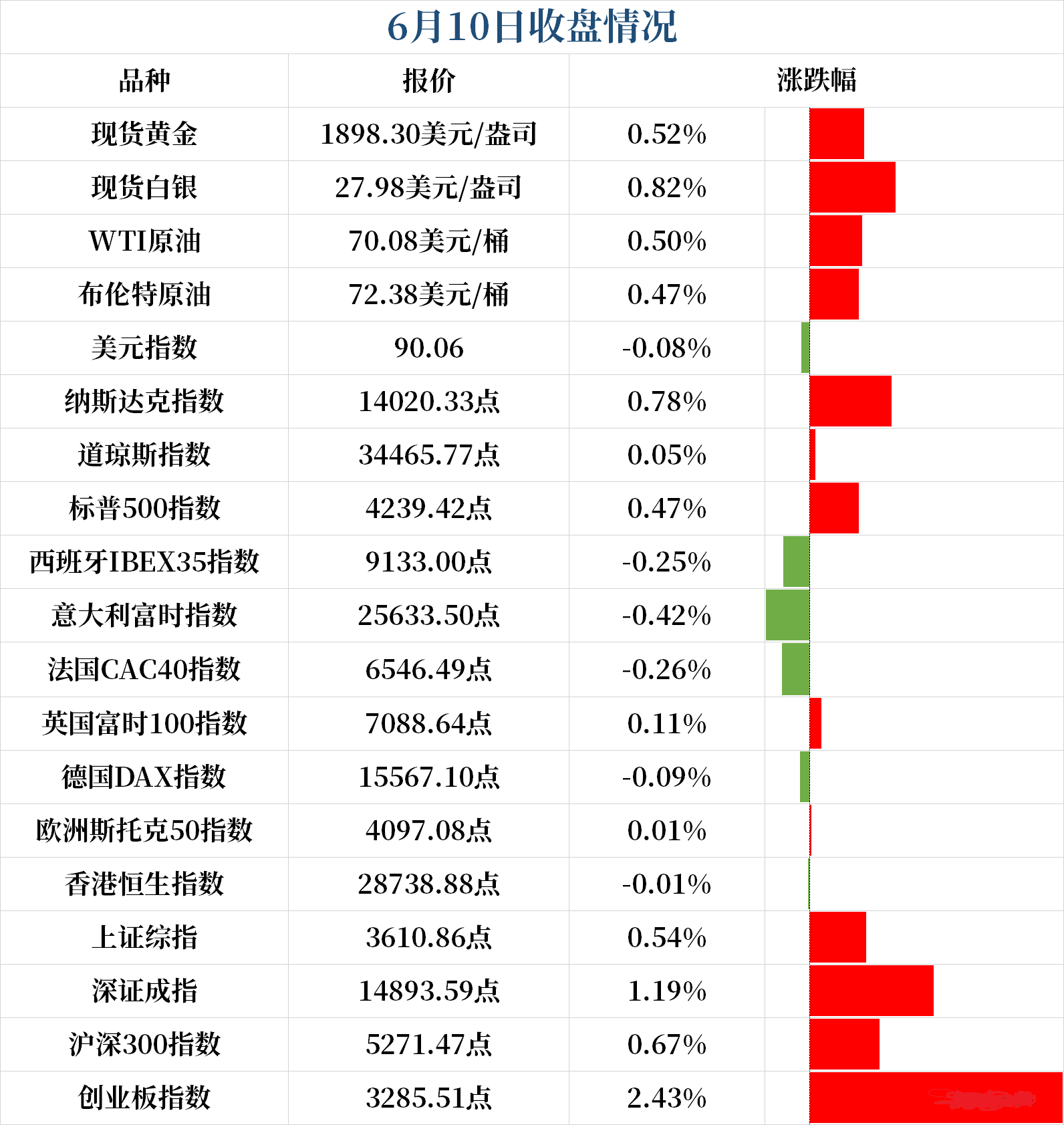 现货黄金周四日间震荡下行,美国CPI数据公布后上演多空双杀剧情,随后持续走高并上破1890美元,最终收涨0.52%,报1898.30美元/盎司;现货白银走势相似,尾盘一度触及28美元,最终收涨0.82%,报27.98美元/盎司。