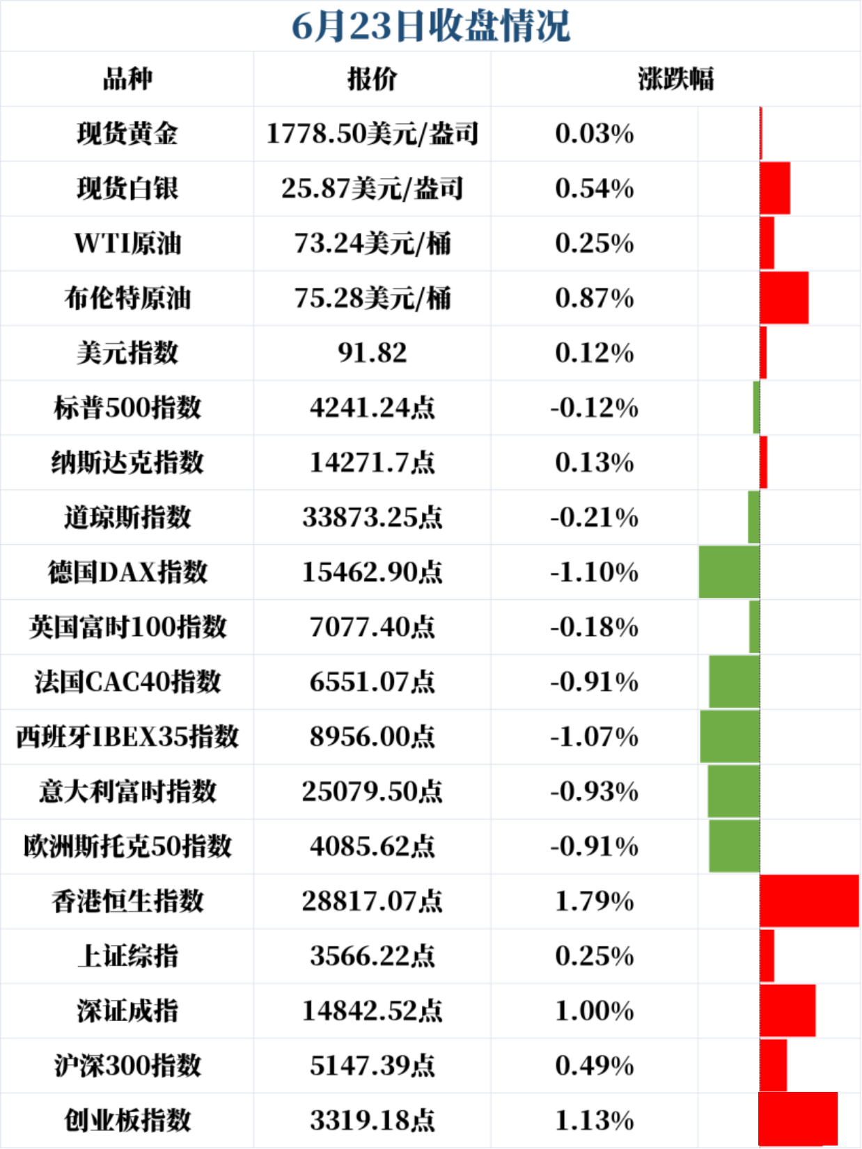 欧洲主要股指集体收跌,法国CAC40指数跌0.91%,英国富时100指数跌0.18%,欧洲斯托克50指数跌0.91%,德国DAX30指数跌1.11%。