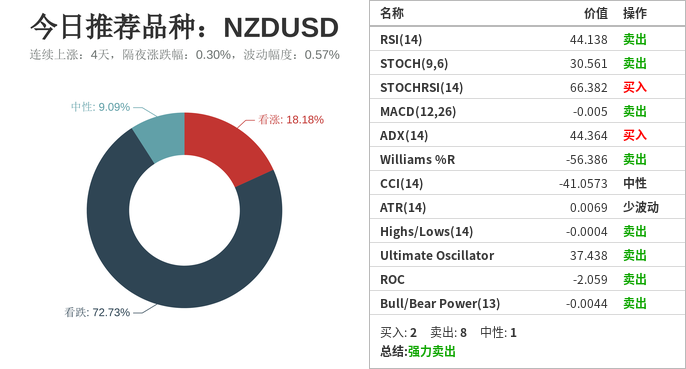 纽元美元(上涨:4天,隔夜涨跌幅:0.30%,波动幅度:0.57%)。