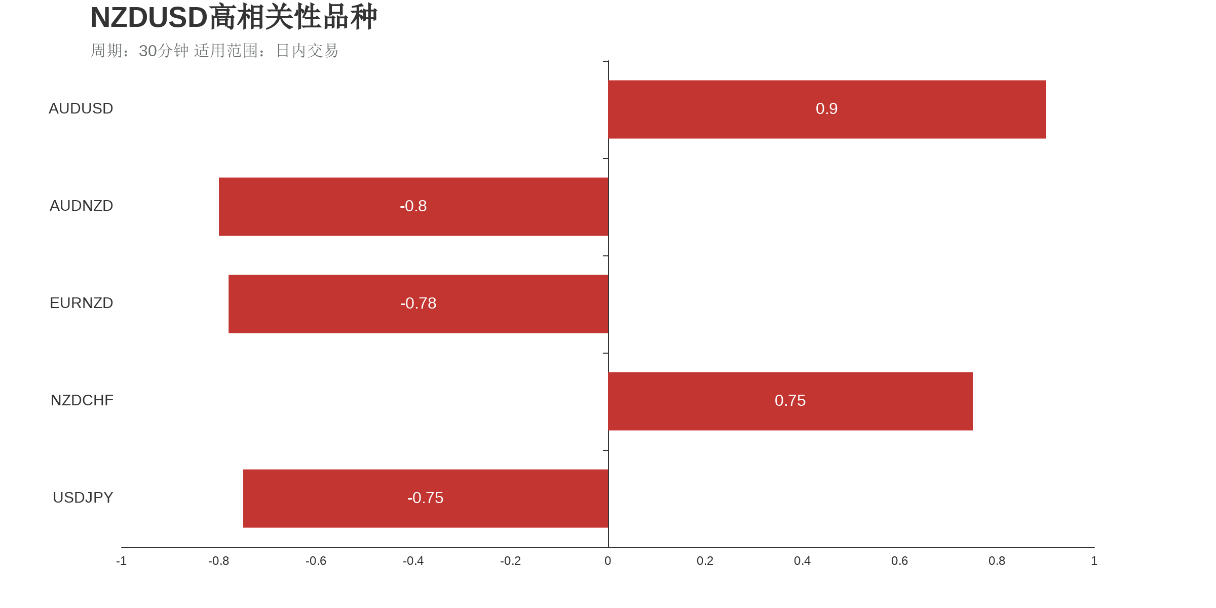 根据外汇相关性实时追踪,NZDUSD在30分钟周期下与部分货币的相关性排行如下图: