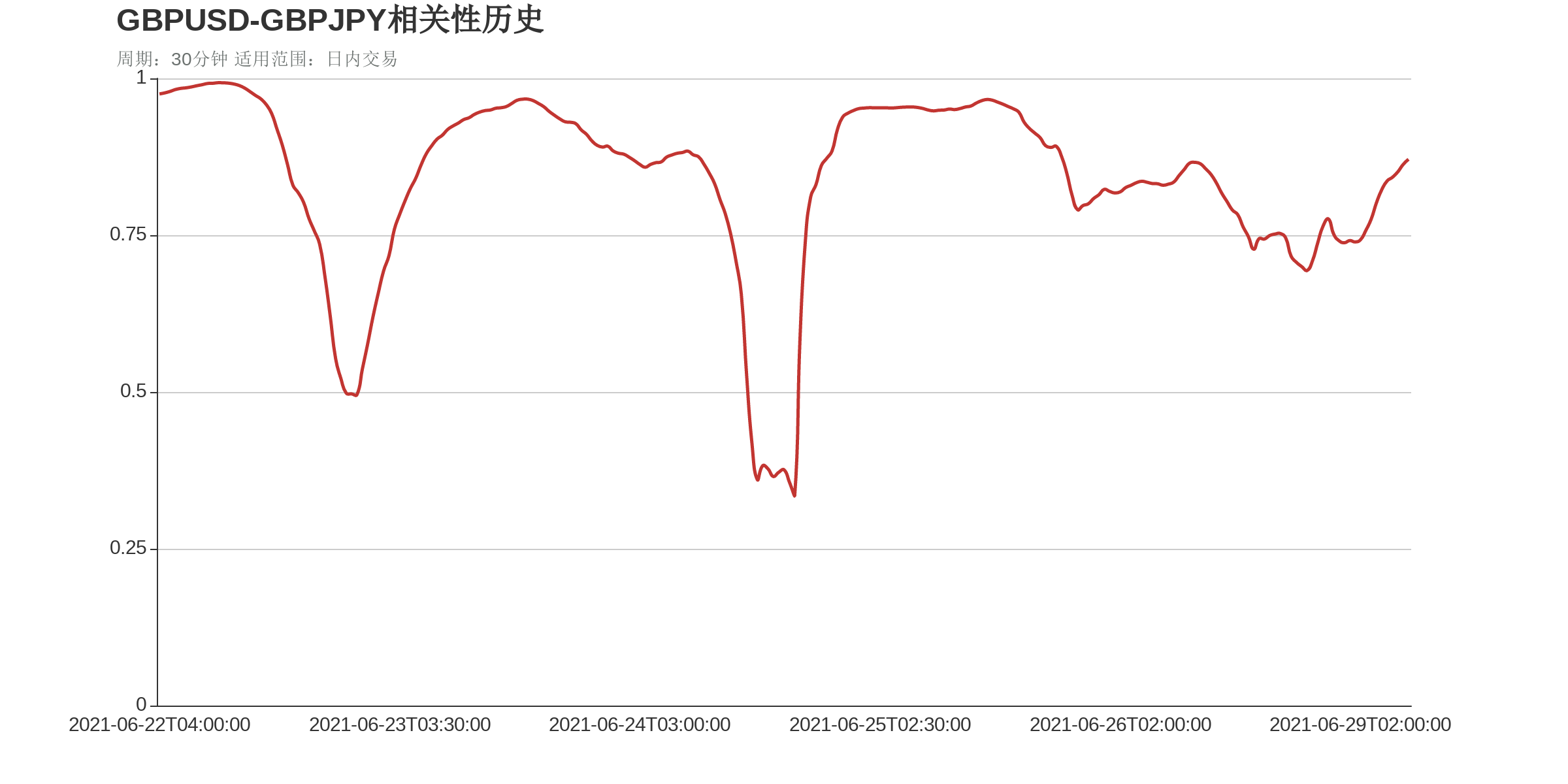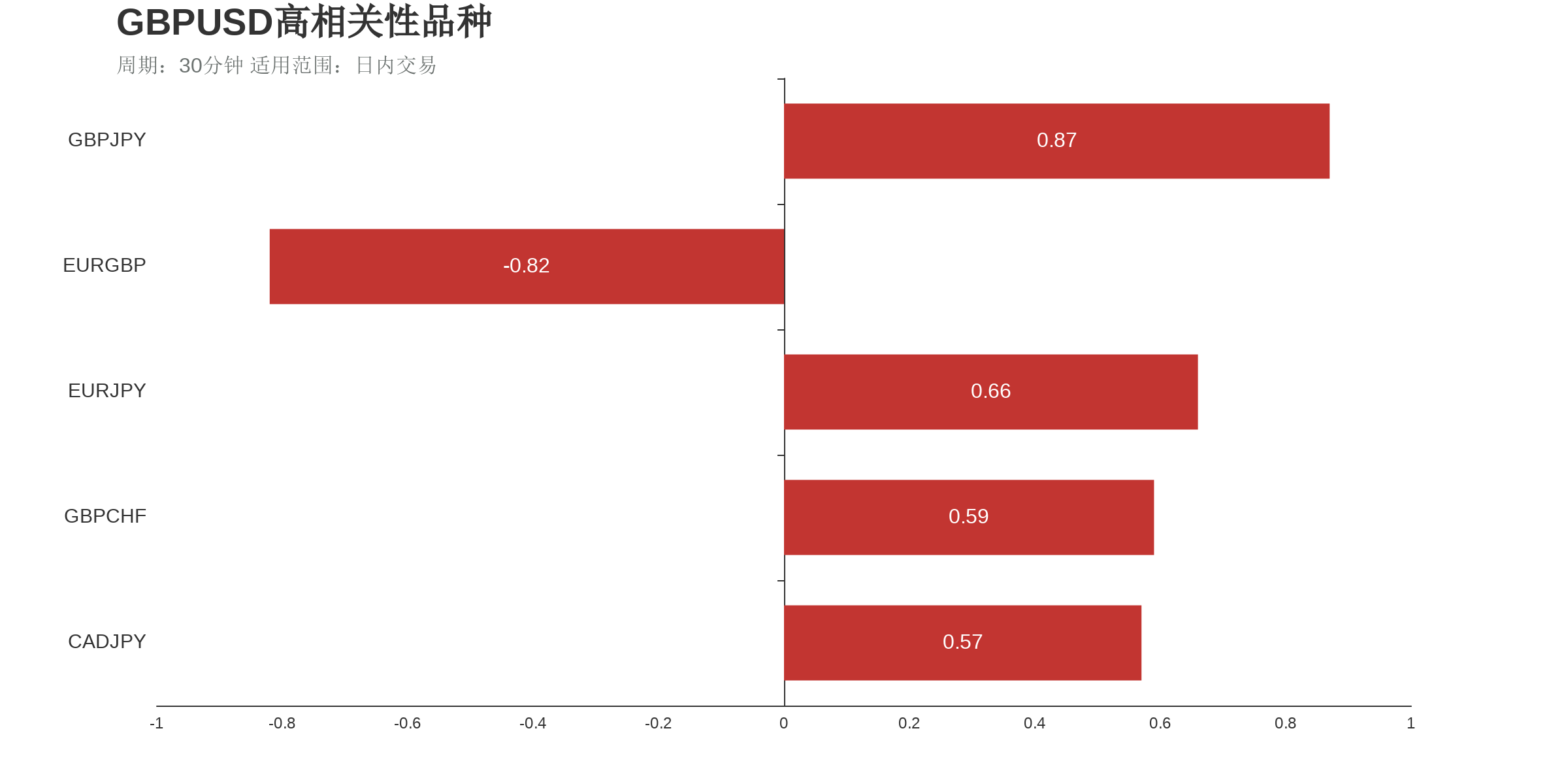 根据外汇相关性实时追踪,GBPUSD在30分钟周期下与部分货币的相关性排行如下图: