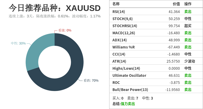 国际黄金(上涨:3天,隔夜涨跌幅:0.61%,波动幅度:1.17%)。
