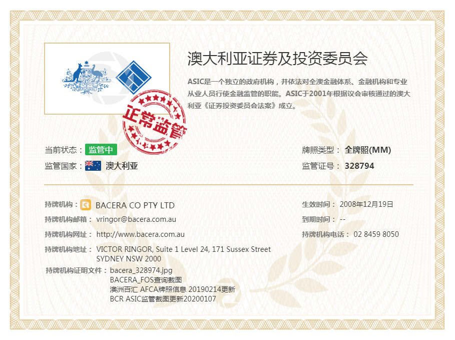 百汇BCR受到澳大利亚投资证券委员会ASIC的监管。拥有业界一流的交易平台,融合了几十年来的行业经验、坚持不懈的创新、以及高端的技术和先进的理念。
