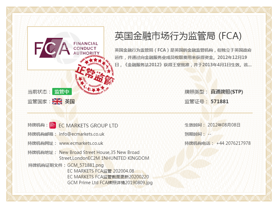 EC MARKETS GLOBAL LLC 注册于圣文森特,注册号码179 LLC 2019,EC Markets严格遵守该监管方的客户资金规则,将所有客户的资金单独隔离存放。EC MARKETS一直为全球的投资者们提供最为稳定安全公平的交易环境和最专业的金融服务。