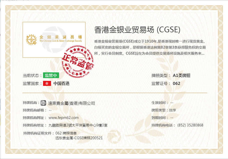 远东贵金属(香港)有限公司(Far East Precious Metal (HK) Limited)为香港知名的贵金属交易服务商,致力为零售客户及金融机构提供贵金属及其衍生产品交易。