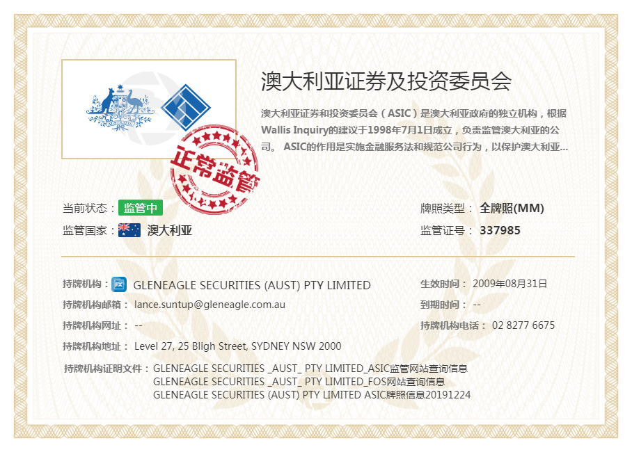 - 监管机构:ASIC