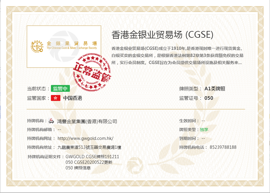 鸿丰金业集团(香港)有限公司,为香港金银业贸易场50号注册行员,持有最高级别AA类交易牌照,属于香港金银业贸易场认可电子交易商。鸿丰金业致力提供稳定、公平、公正的交易平台,专业优秀服务团队以客为本,务求满足客户的投资需求。