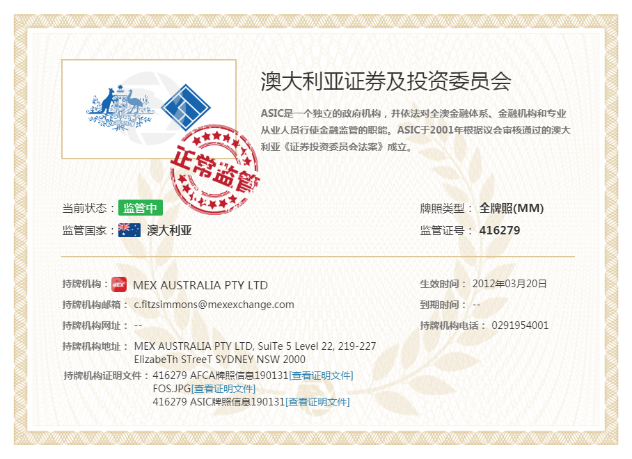 - 监管机构:ASIC