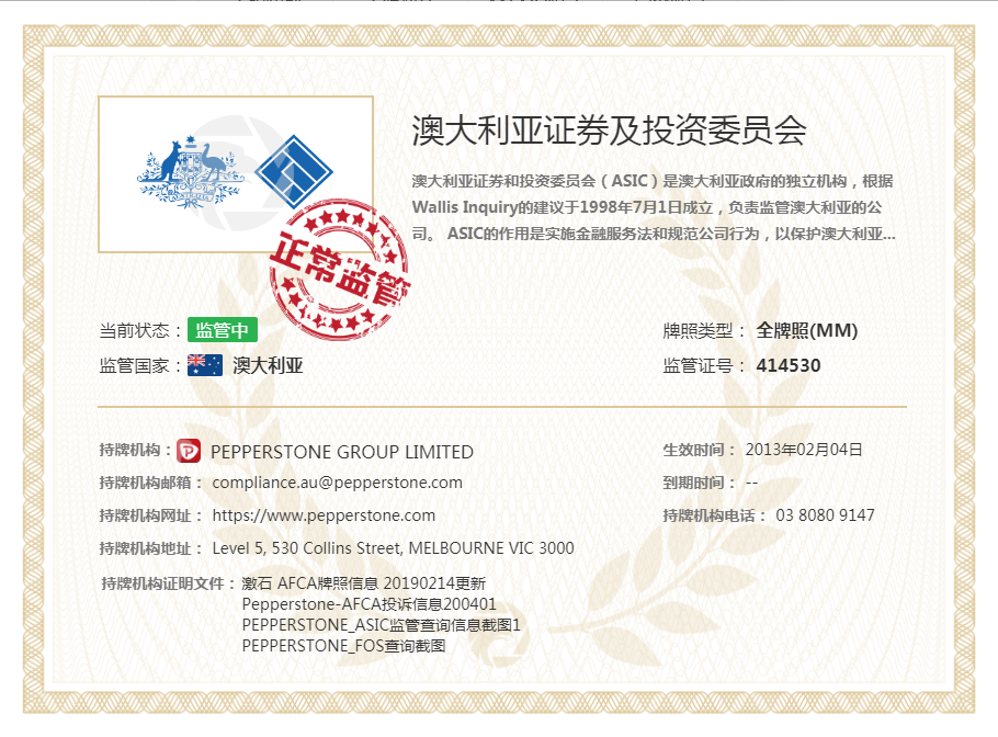 - 监管机构:ASIC